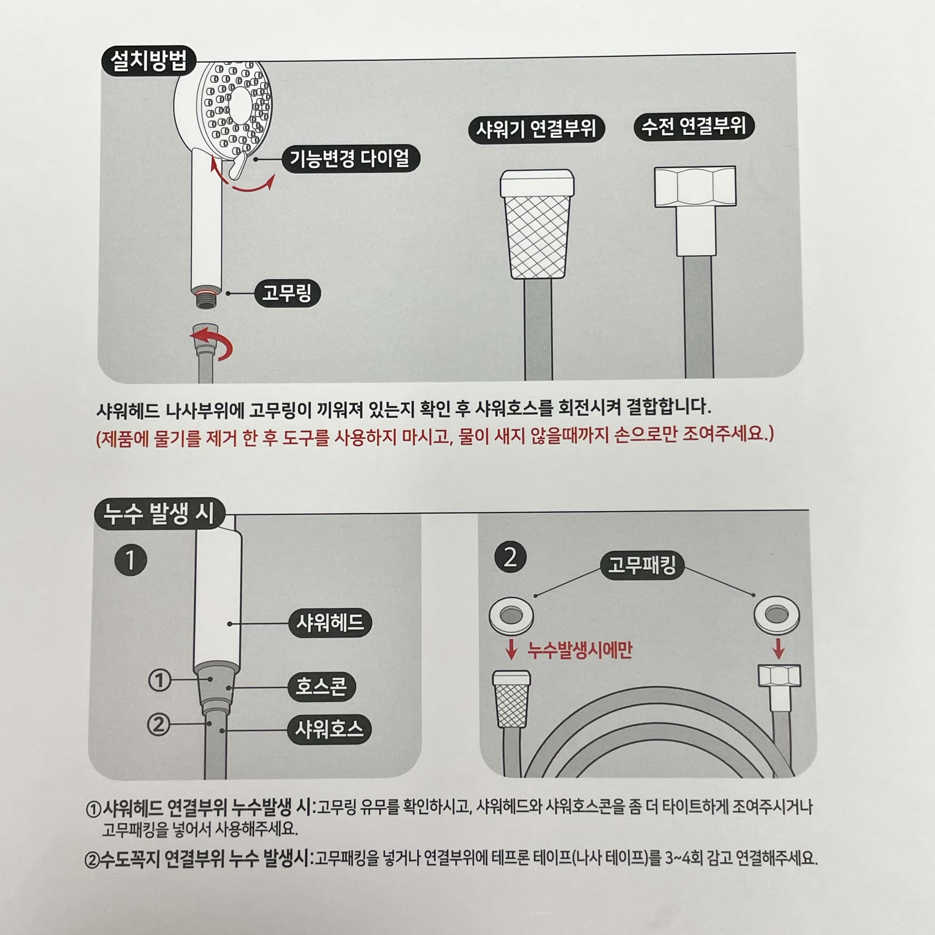 그리고 샤워기 헤드와 호스를 연결해줍니다